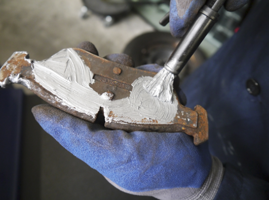 - Nanieść równomiernie cienką warstwę smaru na wybrane miejsce, rozprowadzić za pomocą pędzelka